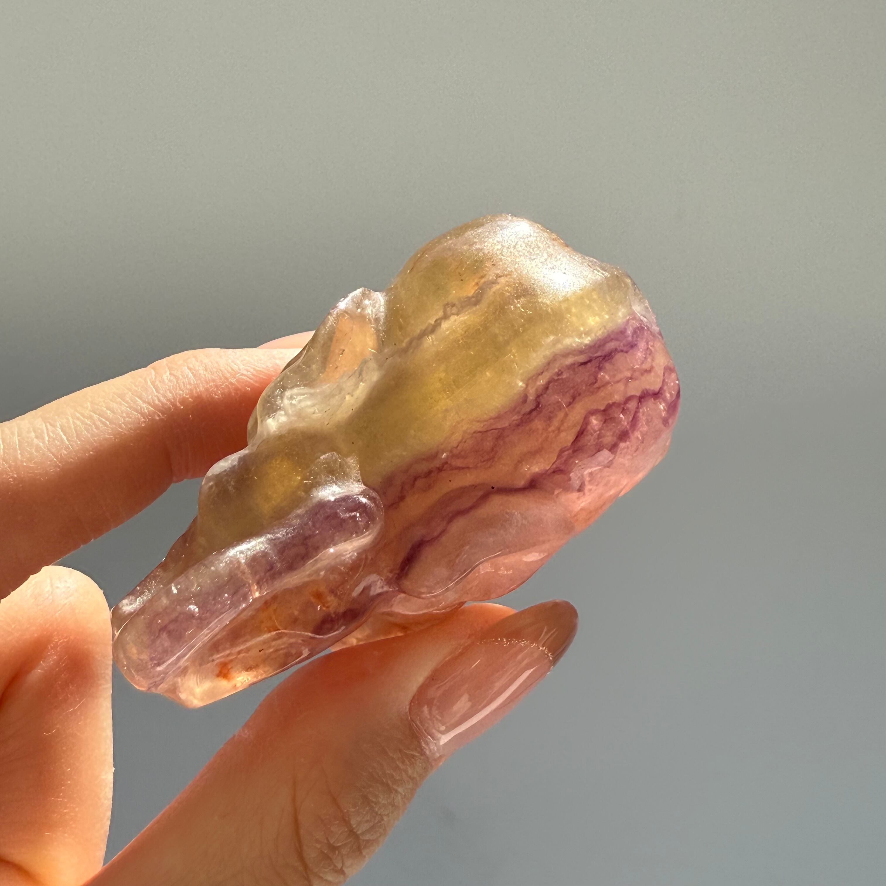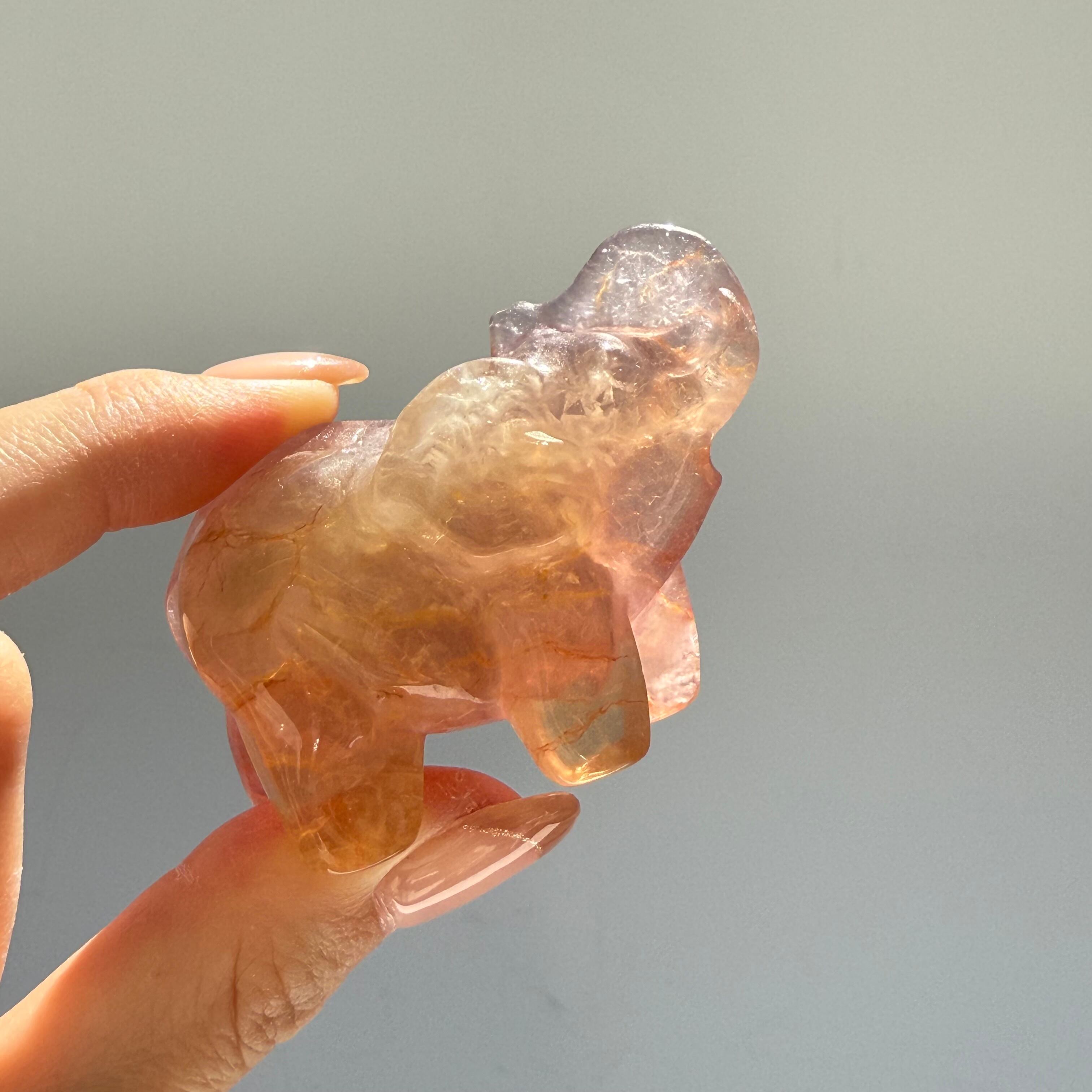 フローライトの癒しの力とゾウの象徴的なエネルギーが合わさり、心の平穏と安定をもたらし、良い運気を引き寄せるお守りとして最適です。